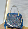 The bag features elegant gold-tone metal handles with a soft denim grip, complemented by a detachable chain strap for versatile carrying options—handheld or over-the-shoulder. Its spacious interior makes it perfect for everyday use, whether you're heading to a casual outing, shopping trip, or brunch with friends.